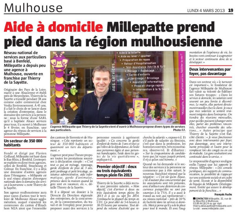 Nous souhaitons la bienvenue à Madame GREGOIRE Delphine qui ouvre une nouvelle agence MILLEPATTE sur Haguenau à partir du 01 Mai 2013.